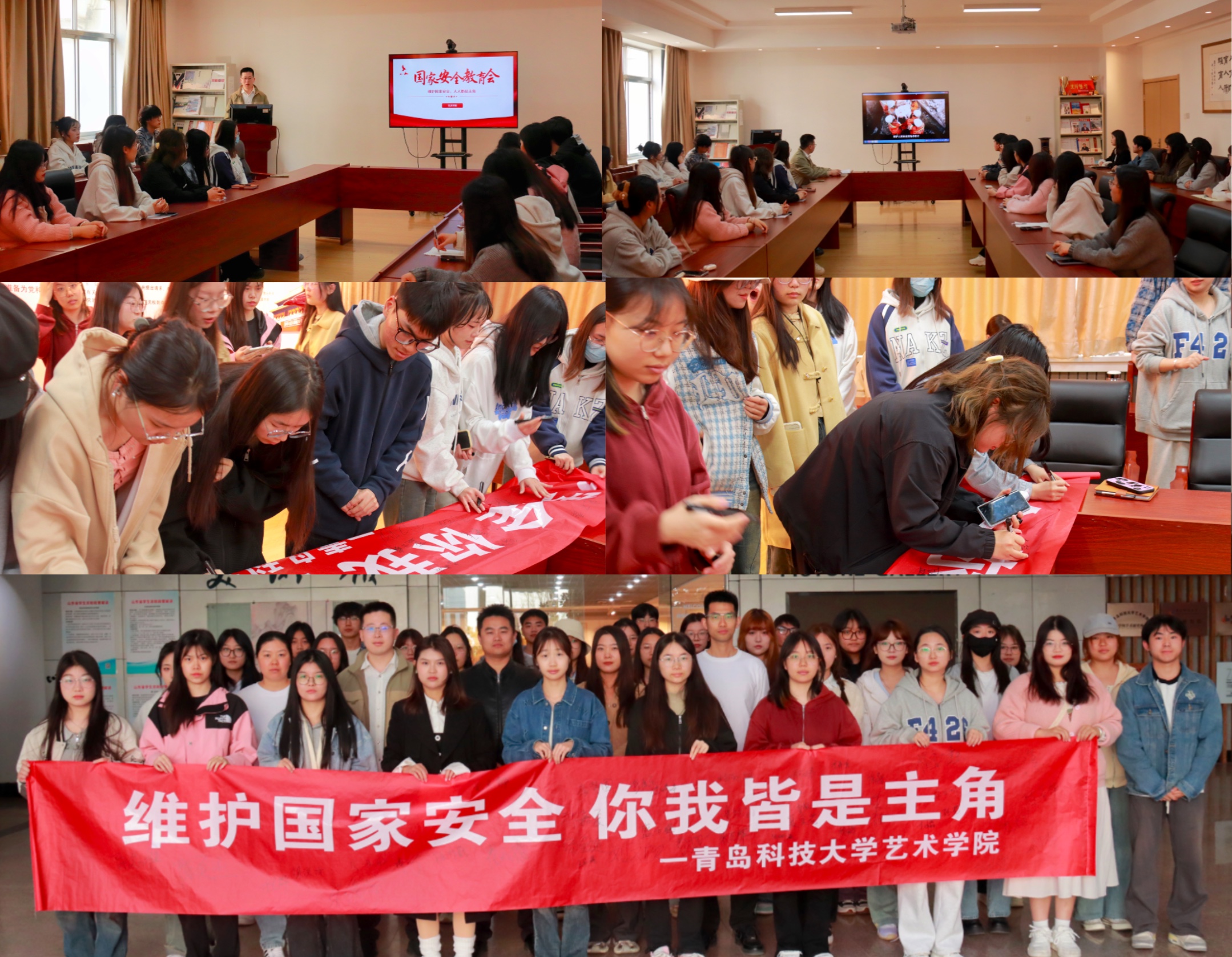 团委在213会议室召开国家安全教育主题宣讲会,团委辅导员盛士峰老师担任主讲人,学生骨干参加会议。会上,盛士峰以《维护国家安全,你我都是主角》为题,结合国家安全最新宣传片,从“什么是国家安全”“国家安全的重要意义”“当代青年学生如何维护国家安全”三个部分进行了全面深入的讲解。本次理论宣讲使得同学们“对国家安全就在身边”的感受更加直观深刻,让“维护国家安全,人人有责”的责任意识得到了进一步强化。理论宣讲结束后,全体参会师生共同参加了“维护国家安全,你我皆是主角”的签名承诺活动。