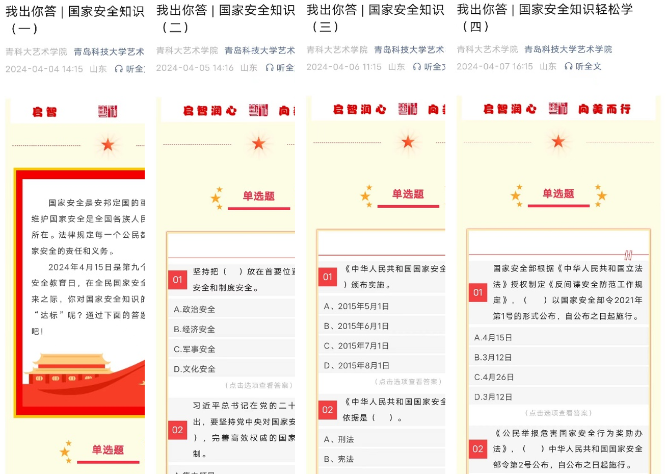 国安标语青年说,知识问答一起学。4月4日-4月7日期间,通过你出我答的形式在微信公众号连续推出四期国家安全知识轻松学。大赢家比分