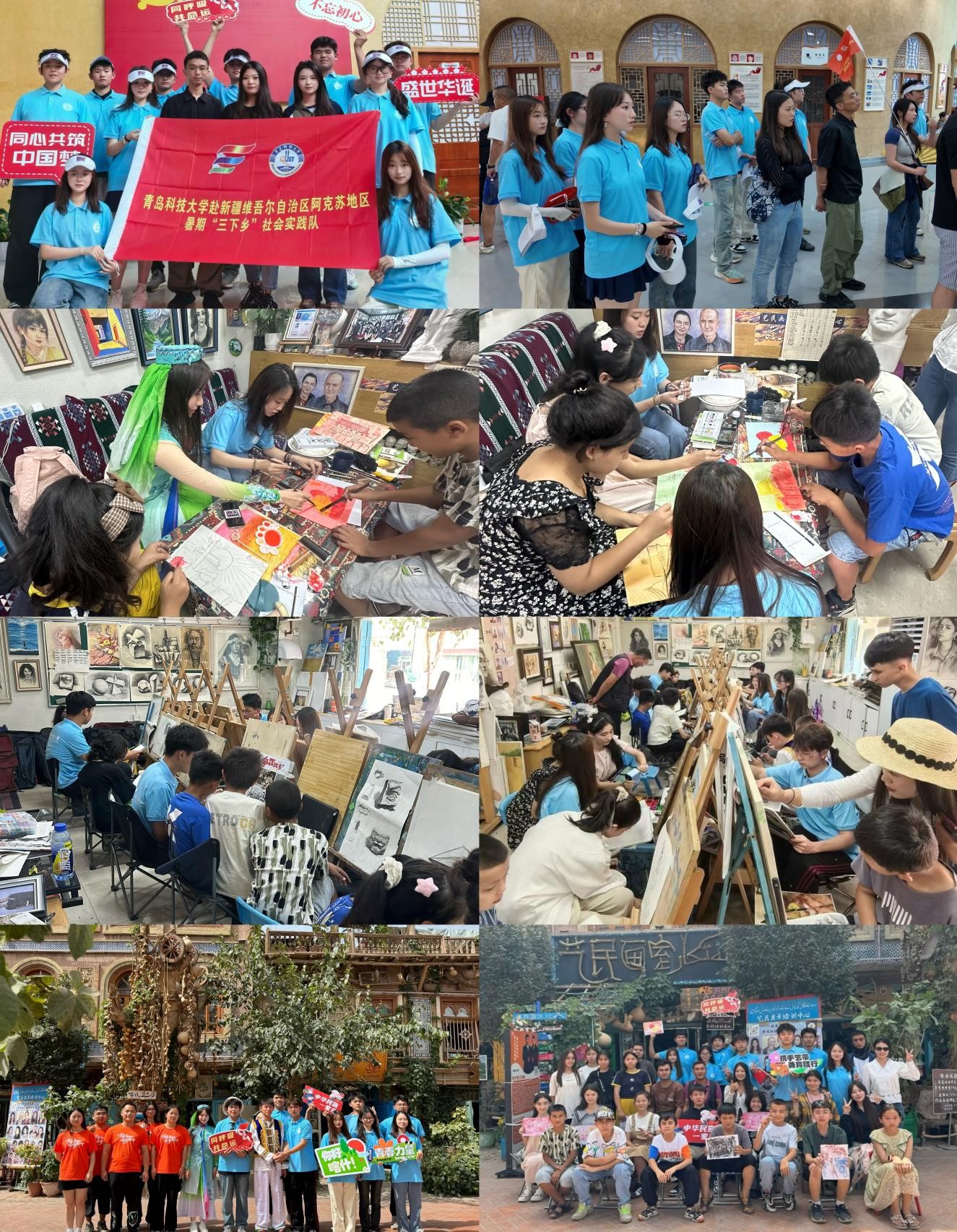 “艺术姐姐”实践团还抵达了历史悠久的喀什古城,他们用歌声搭建起爱的桥梁。实践团成员与孩子们共同演唱《相亲相爱》,旋律悠扬,歌声中,洋溢着纯真的笑容与对美好生活的共同向往,传递出跨越地域的温暖与希望。在画室中,实践团的成员们与一群充满好奇与创造力的小朋友们欢聚一堂。他们耐心地倾听孩子们对于艺术的初步认识和创作心得,用温暖的话语和鼓励的眼神激发了孩子们的无限灵感。