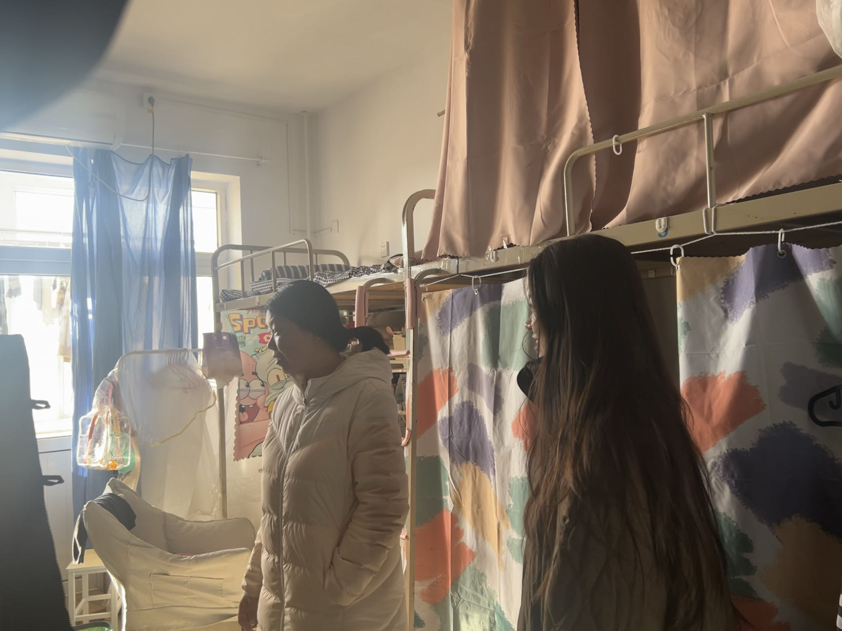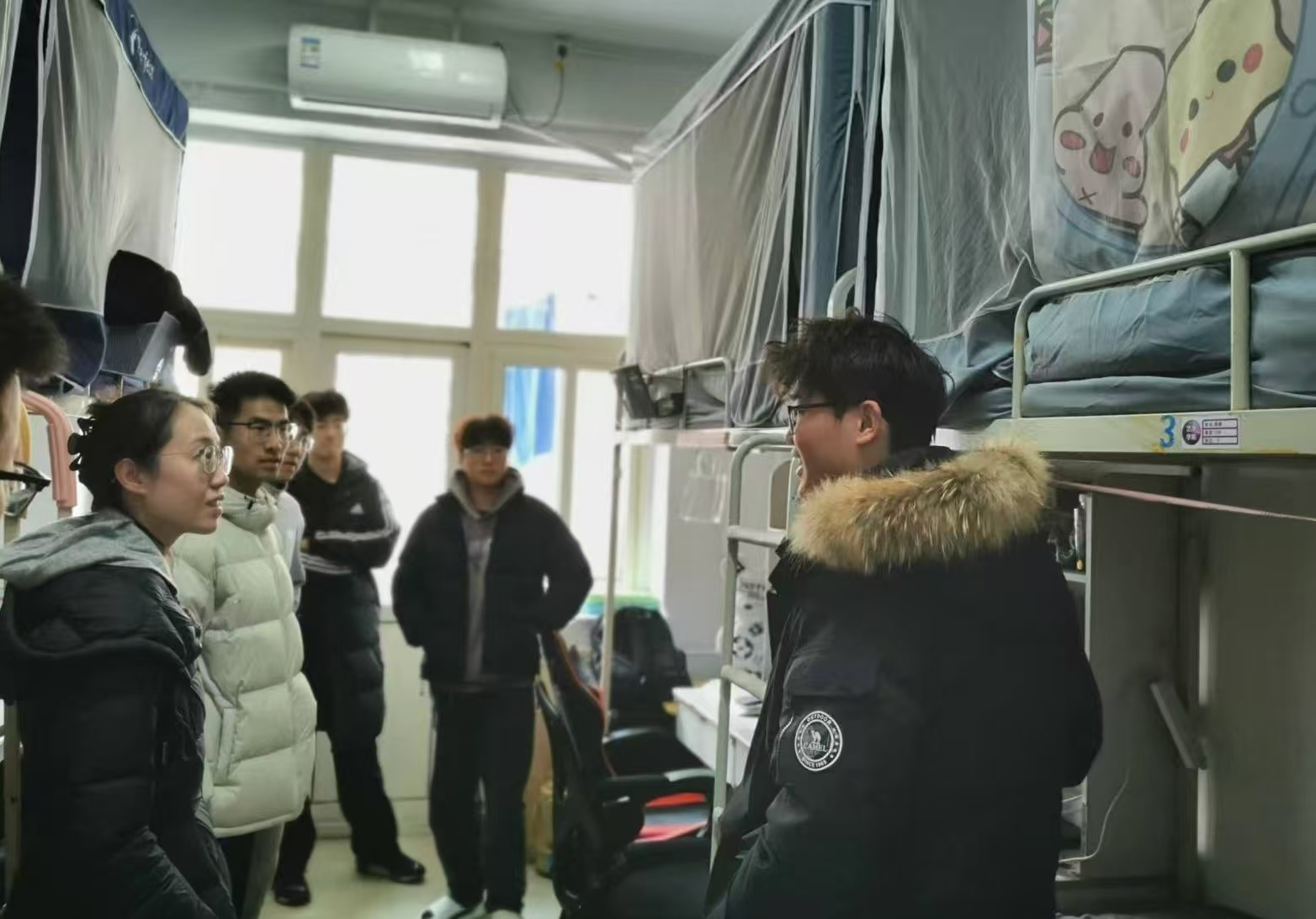 走访期间,老师们对学生宿舍卫生、安全设备以及公共设施进行了检查与提醒,希望同学们保持良好的卫生习惯,共建整洁、舒适、安全的住宿环境,并鼓励同学们珍惜大学时光,增强思想政治修为,全面提升自身素质。
