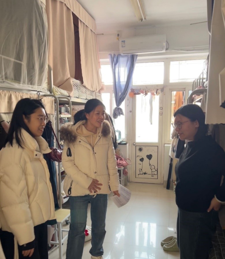 党委副书记兼副院长丁一宁和各年级辅导员深入学生宿舍,进行实地走访与检查。