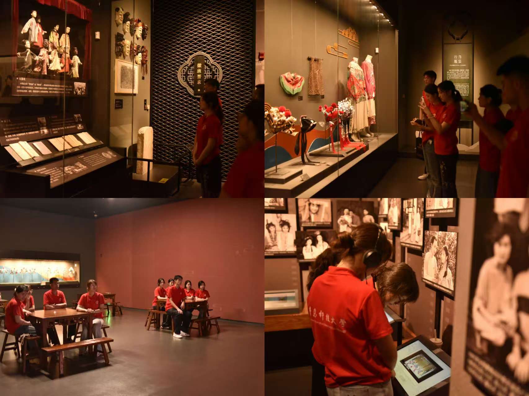 访中国黄梅戏博物馆,在百年戏韵中探寻传统文化与时代精神的共鸣。实践团成员通过多维艺术感知,探寻国家级非物质文化遗产的当代生命力。在博物馆专业讲解下,实践团沿着黄梅戏艺术发展脉络深度探访。从茶山田埂的原始唱腔到华美舞台的成熟演绎,百年嬗变在光影交织中生动呈现。当步入严凤英专题展区,泛黄剧本手稿上的修改笔记、缀满岁月痕迹的演出头饰,无声诉说着人民艺术家的赤诚匠心。专题影厅内,经典剧目《女驸马》修复影像正徐徐展卷,严凤英饰演的冯素珍以清丽婉转的“为救李郎离家园”惊艳全场,女扮男装的英挺身姿与细腻传神的眼波流转,在方寸舞台间迸发出冲破封建桎梏的生命力量,令在场学子深切体悟“戏比天大”的精神境界。实践团细致观察黄梅戏的水袖云纹、唱腔韵味等文化元素,拆解戏服纹样、捕捉身段轨迹,思考如何将其转化为设计灵感,将提炼戏韵中的江淮风骨,在红色文创设计中续写文化传承的新篇章。