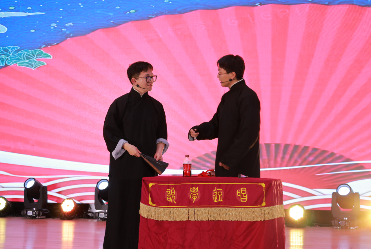 流行舞串烧《潮舞集结号·艺彩绽放》以动感的舞步点燃全场,情景剧《烽火与繁华》穿梭时空,在历史与当下的碰撞中诉说家国情怀,歌曲《鲜花》以温柔的旋律传递美好期许,相声《口吐莲花》则用诙谐的语言、巧妙的包袱逗乐全场,传统曲艺在舞台上焕发出新的光彩。