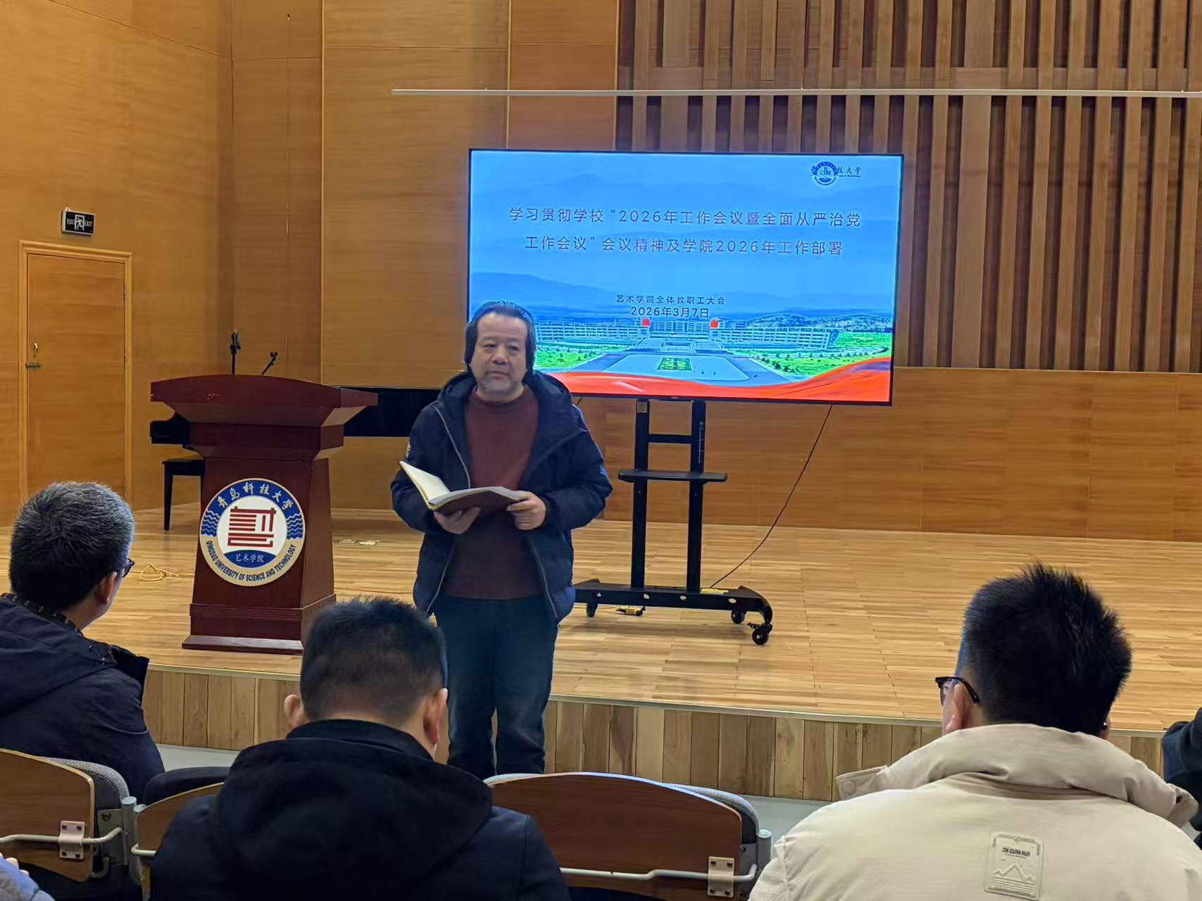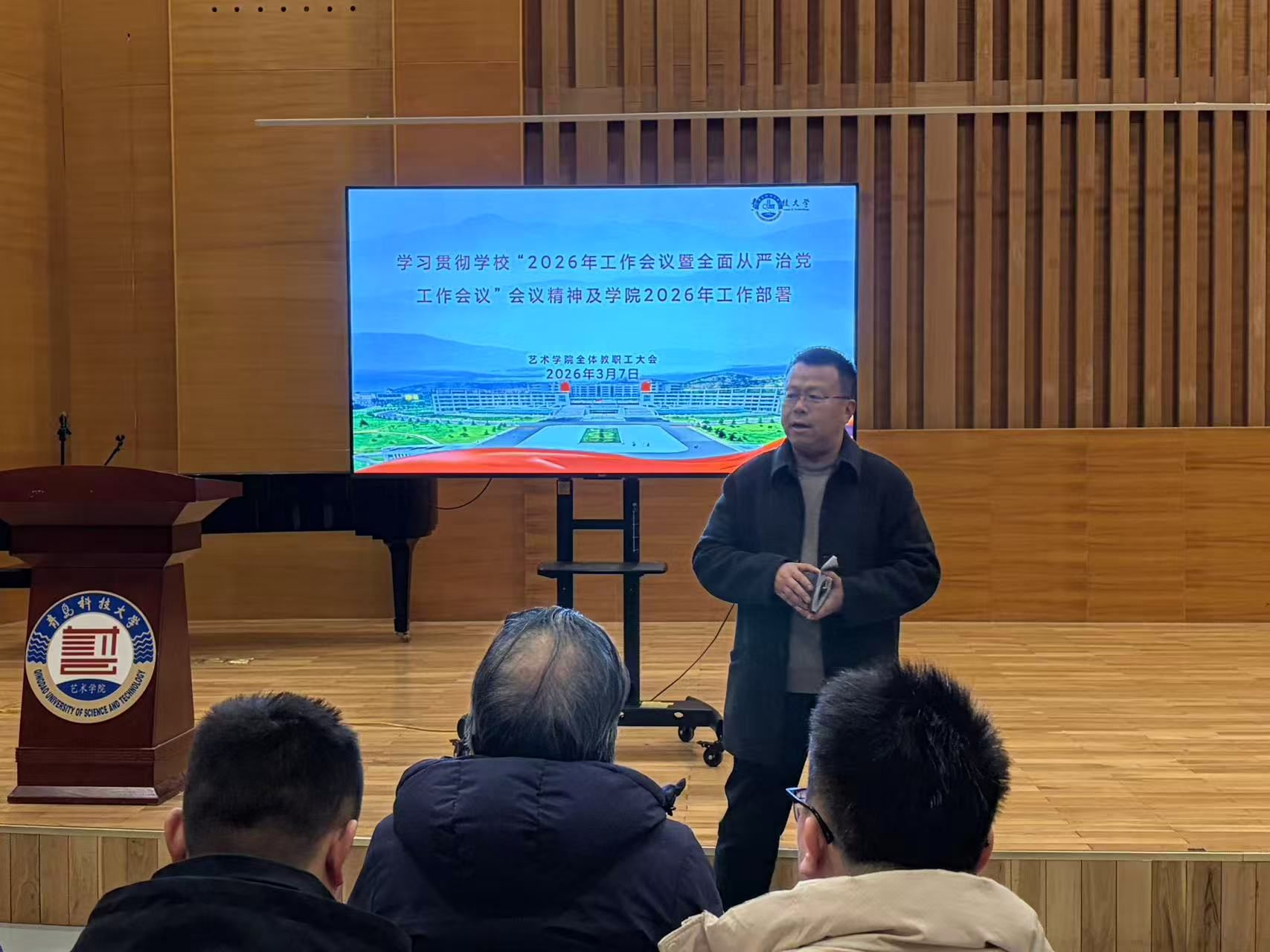 学科建设提升。他对全体教师提出三点要求:一是严守教学规范,上好每一堂课,保障课堂秩序与教学质量;二是做实人才培养,全方位关心学生成长成才;三是强化大局意识,主动提升办学影响力与社会口碑,彰显艺术学科特色与价值。