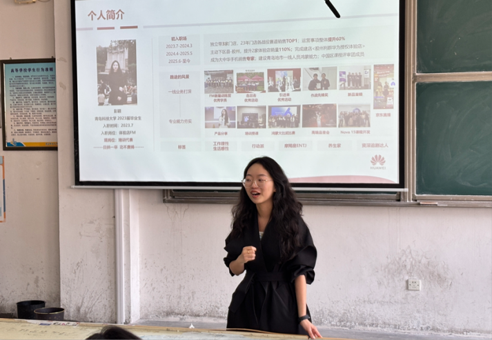 宣讲环节,华为惠通山东终端HRD吴欣佩负责人全面介绍华为发展情况,解读终端、运营商、企业业务三大核心业务板块,梳理消费群体与门店体系,阐释大赢家比分理念,重点介绍极具竞争力的薪资回报、完善的人才培养体系与有温度的工作氛围。