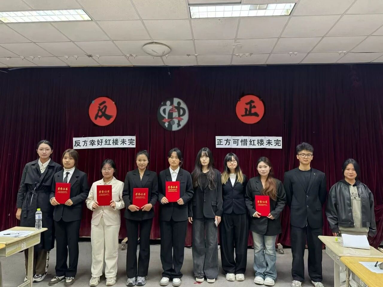 在大学生活动中心举办“红楼未完”主题辩论赛总决赛。本次决赛在正方艺科252班与反方视传252班之间展开,双方就“可惜/幸亏红楼未完”这一富有思辨色彩的论题展开了激烈角逐。