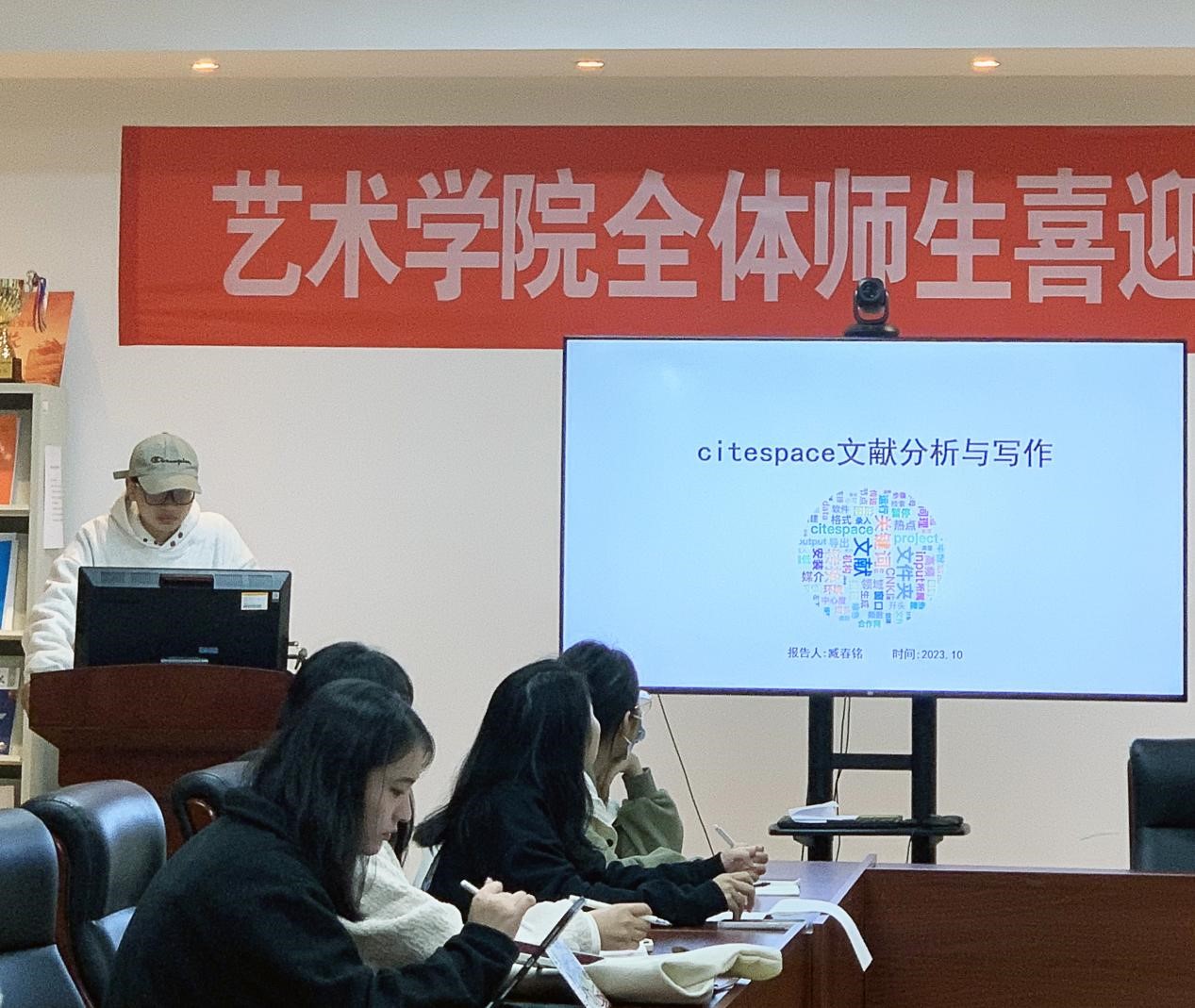 第二位是环境设计方向的臧春铭同学,介绍了文献可视化分析的科研神器——citespace,从下载方式、使用方法、特点优势等都做了详尽细致的阐述。事实上,citespace在国内外都有着广泛的运用,对研究热点、研究前沿和研究趋势上更加便于学者进行深层次的探索,能够更加有效地帮助学者更好的理解所从事的研究领域,展示某个研究领域的整体状况,突显在该领域发展历程中的特定重要文献。臧春铭同学也结合自身经历介绍了论文撰写的整个过程,分享了写作经验,指出论文撰写过程中需要注意的语群之间的逻辑衔接问题,并针对这些问题提供了解决方案。