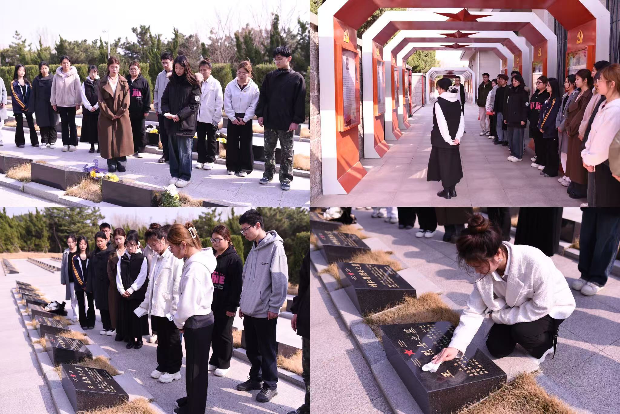 党委副书记兼副院长丁一宁,辅导员盛士峰、杨橙,“党员先锋队”学生代表20余人前往崂山烈士陵园开展“追思英烈,薪火相传”为主题的清明祭英烈教育活动。