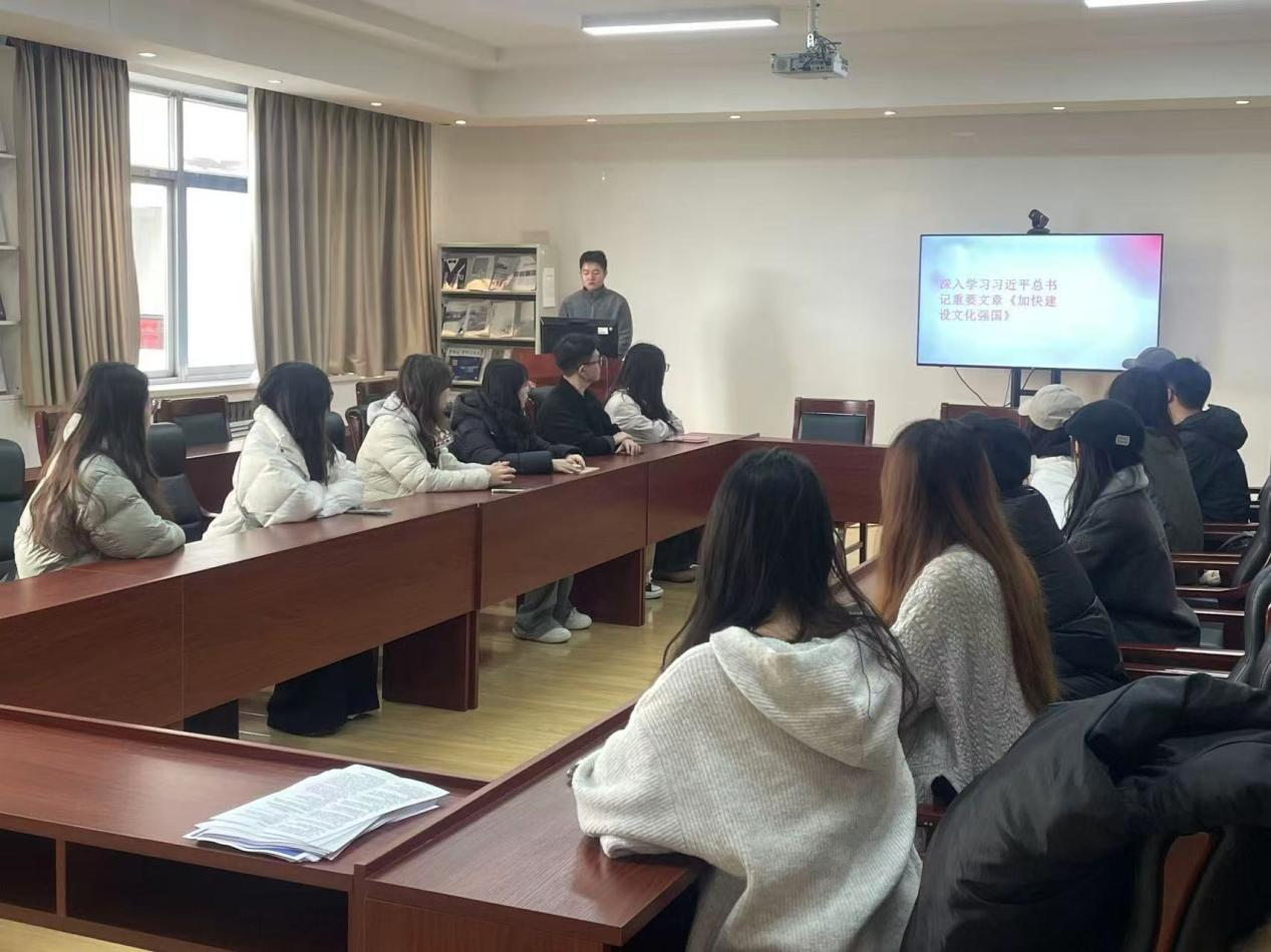 研究生会在213会议室举办读书分享会,活动以“深入学习习近平总书记重要文章《加快建设文化强国》”为主题,通过集中研读、专业研讨凝聚思想共识。