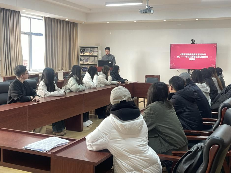 领读人系统解读了高水平对外开放的核心要义与实践要求,强调开放是国家发展的必由之路,青年一代需主动融入国家开放大局。学习过程中简要介绍了制造业与服务业协同开放的产业布局,阐明两业融合对构建现代化产业体系的重要意义。