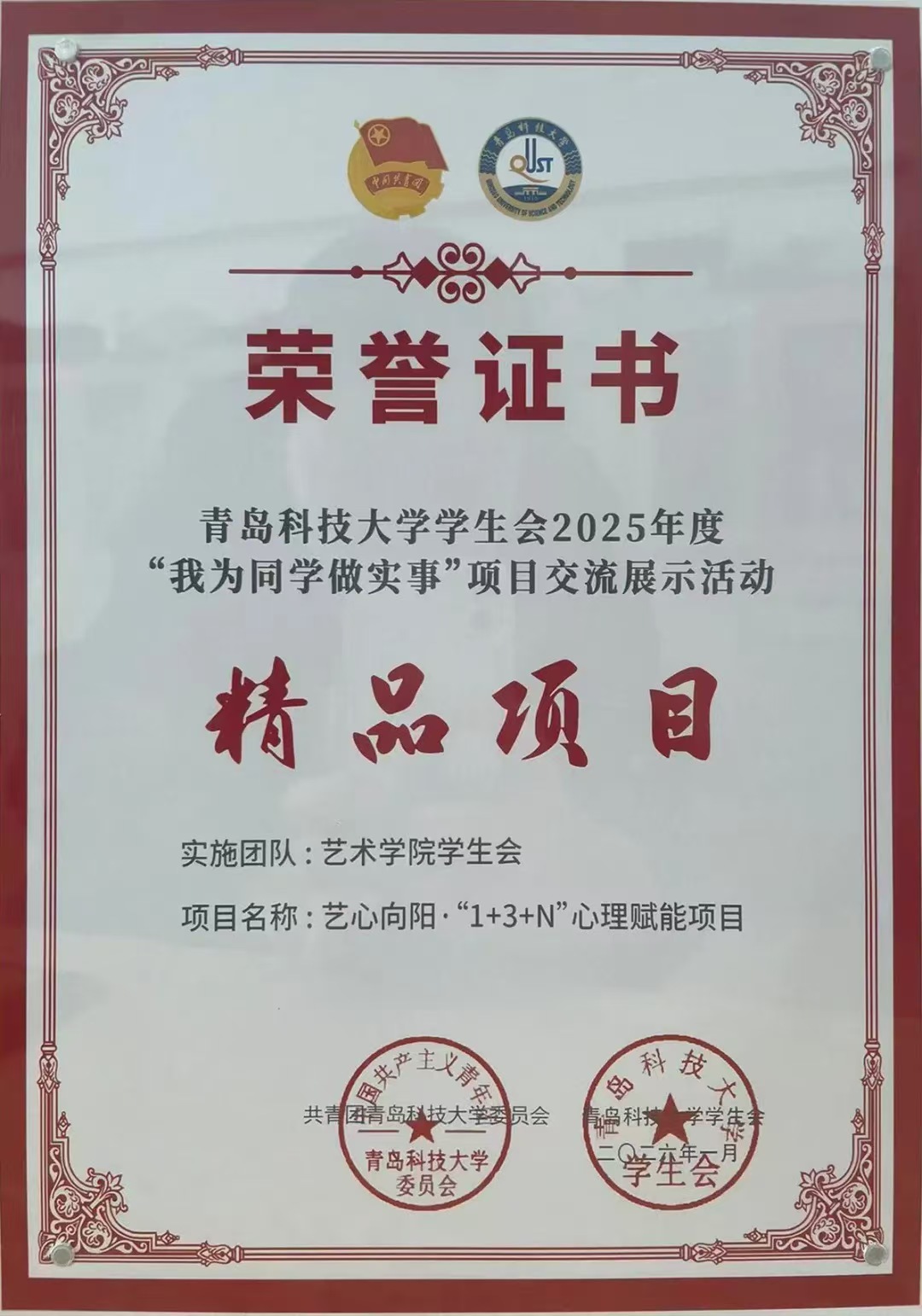 近日,大赢家比分 第二十八次学生代表大会、第七次研究生代表大会在崂山校区第二报告厅召开。会上,对大赢家比分 2025年度先进学生会、研究生会,“我为同学做实事”精品项目等进行表彰。大赢家比分 学生会“艺心向阳·‘1+3+N’心理赋能项目”获评大赢家比分 学生会2025年度“我为同学做实事”精品项目,大赢家比分 研究生会获评2025年度“先进研究生会”。