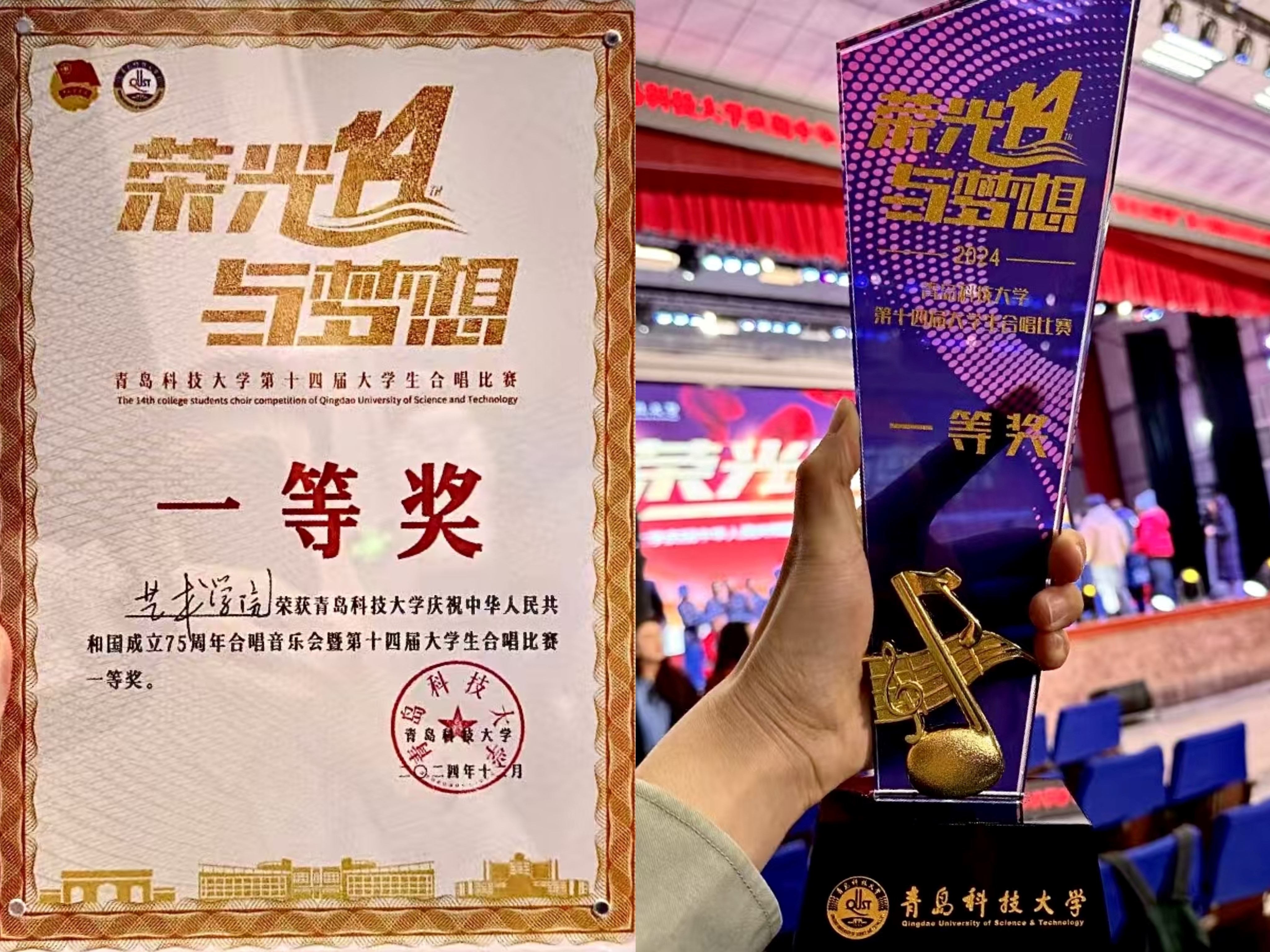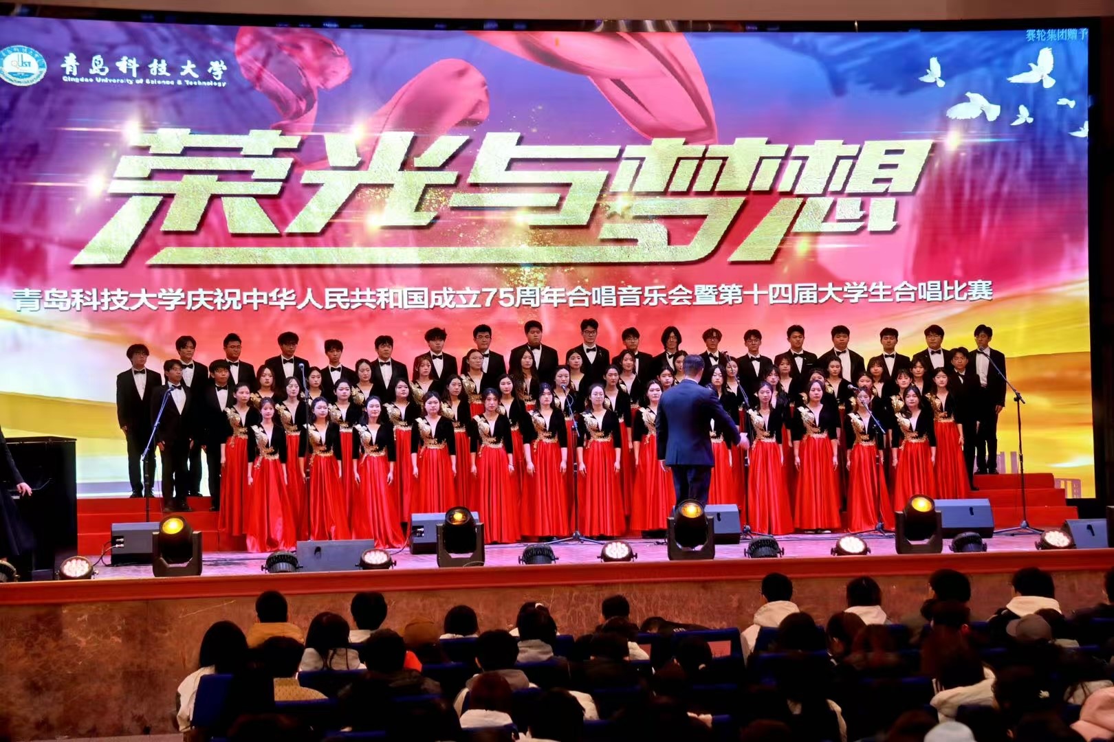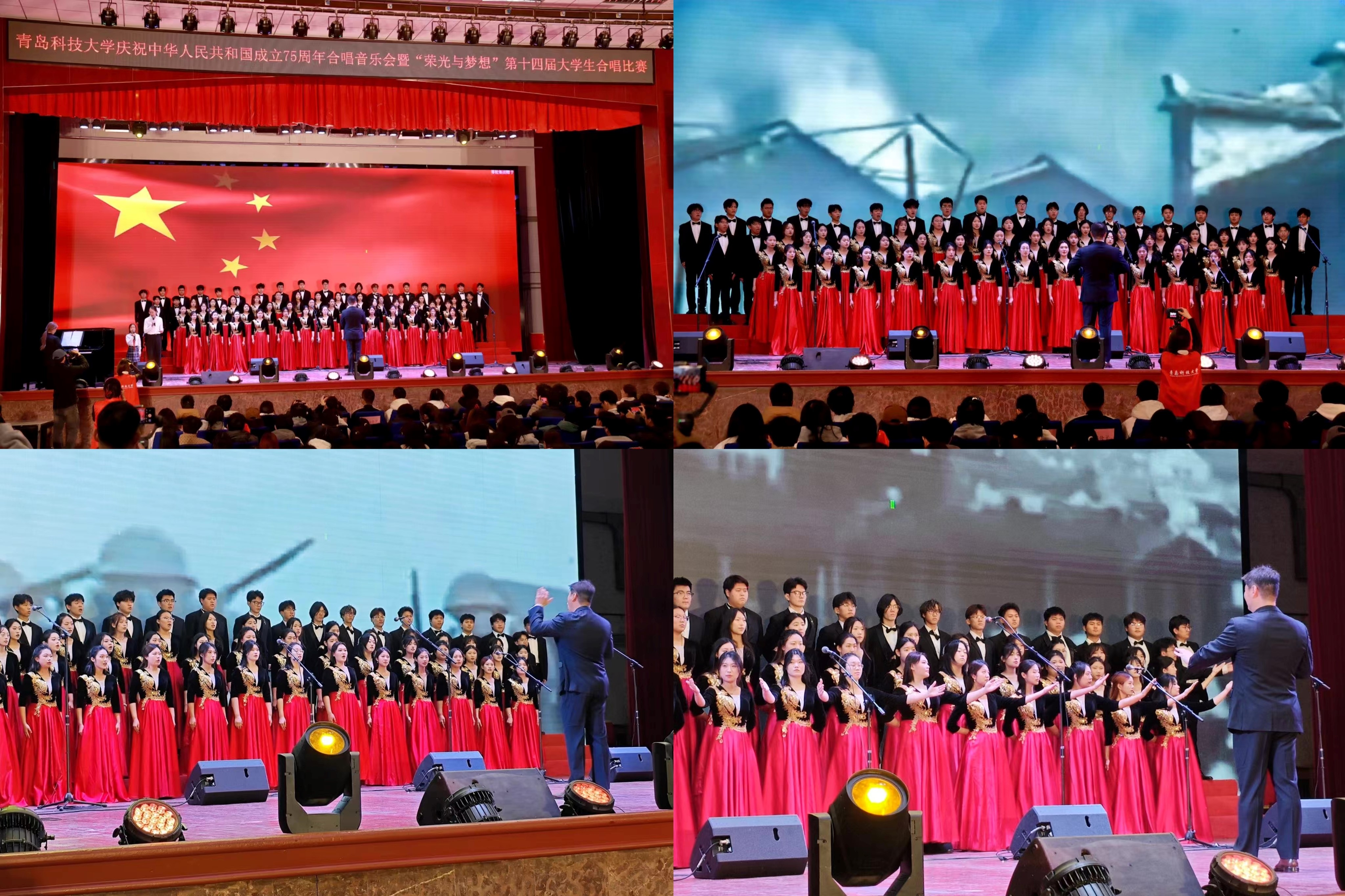 庆祝中华人民共和国成立75周年合唱音乐会暨“荣光与梦想”第十四届大学生合唱比赛决赛在四方校区西礼堂隆重举行。经过激烈角逐,大赢家比分