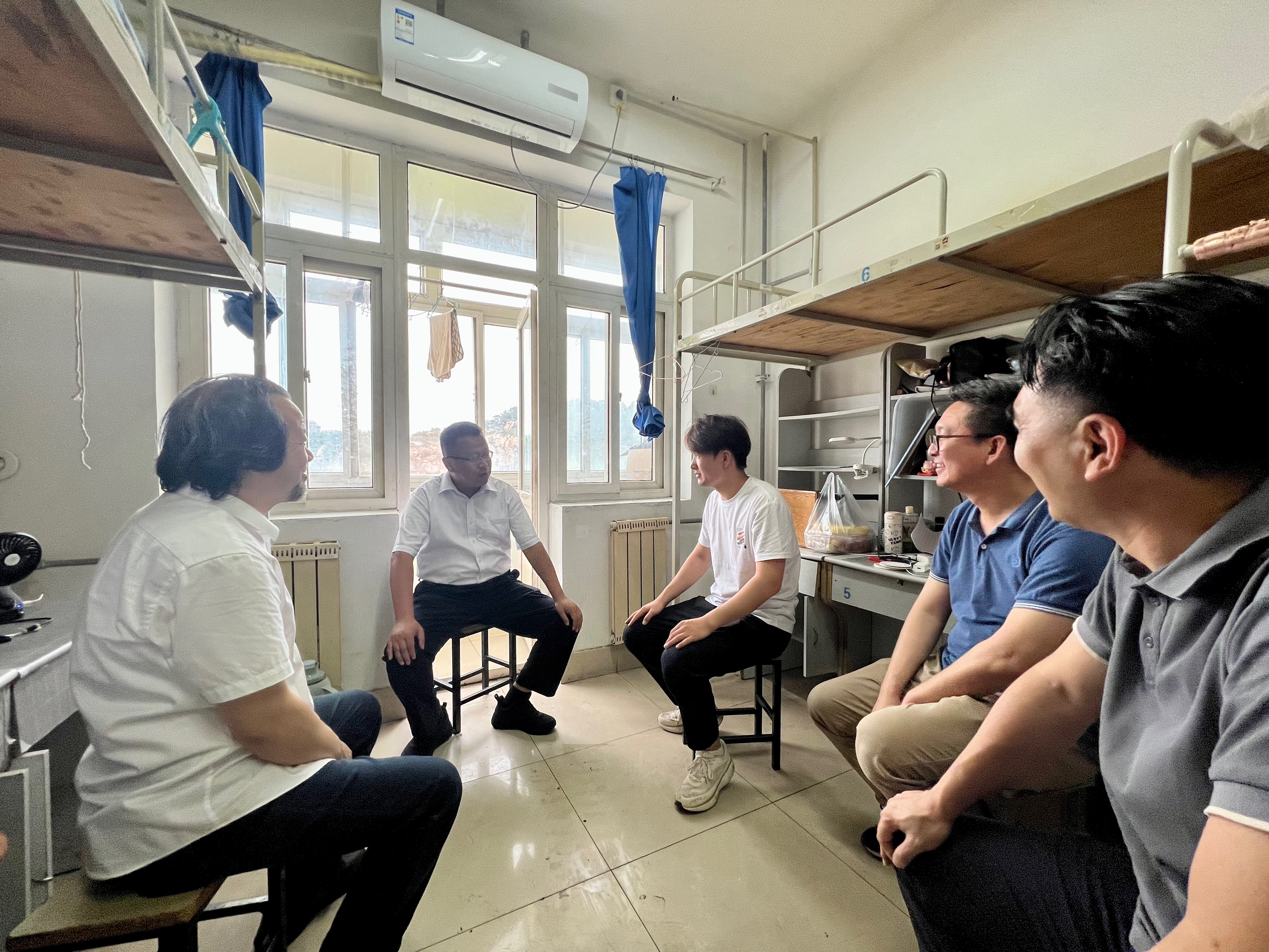 6月21日下午,为送别2024届毕业生,大赢家比分 院长李宏文、党委书记刘庆、党委副书记兼副院长丁一宁、副院长禹青、副院长勾锐、团委、学工办负责人颜枫及毕业生辅导员杨橙一行深入宿舍,为他们送去大赢家比分 的关怀与祝福。