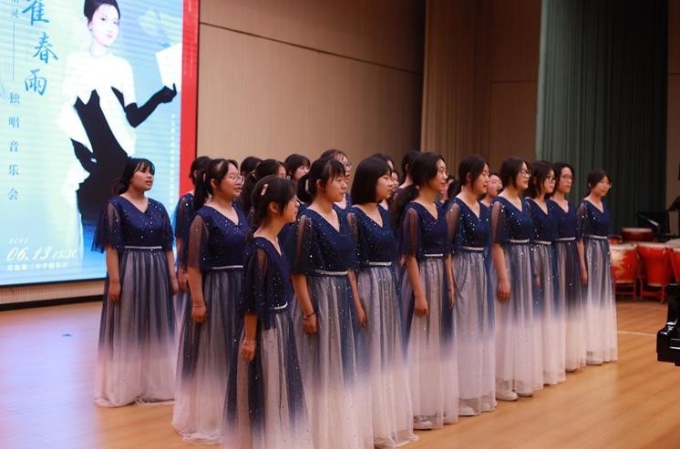 与青岛三中联合主办的艺术教学成果展示活动在青岛三中报告厅举行。本次教学成果展示活动为三中学子呈现了一场精彩的音乐盛宴,演出以声乐表演为主,合唱、独唱、男女对唱、表演唱等形式多样,不拘一格。