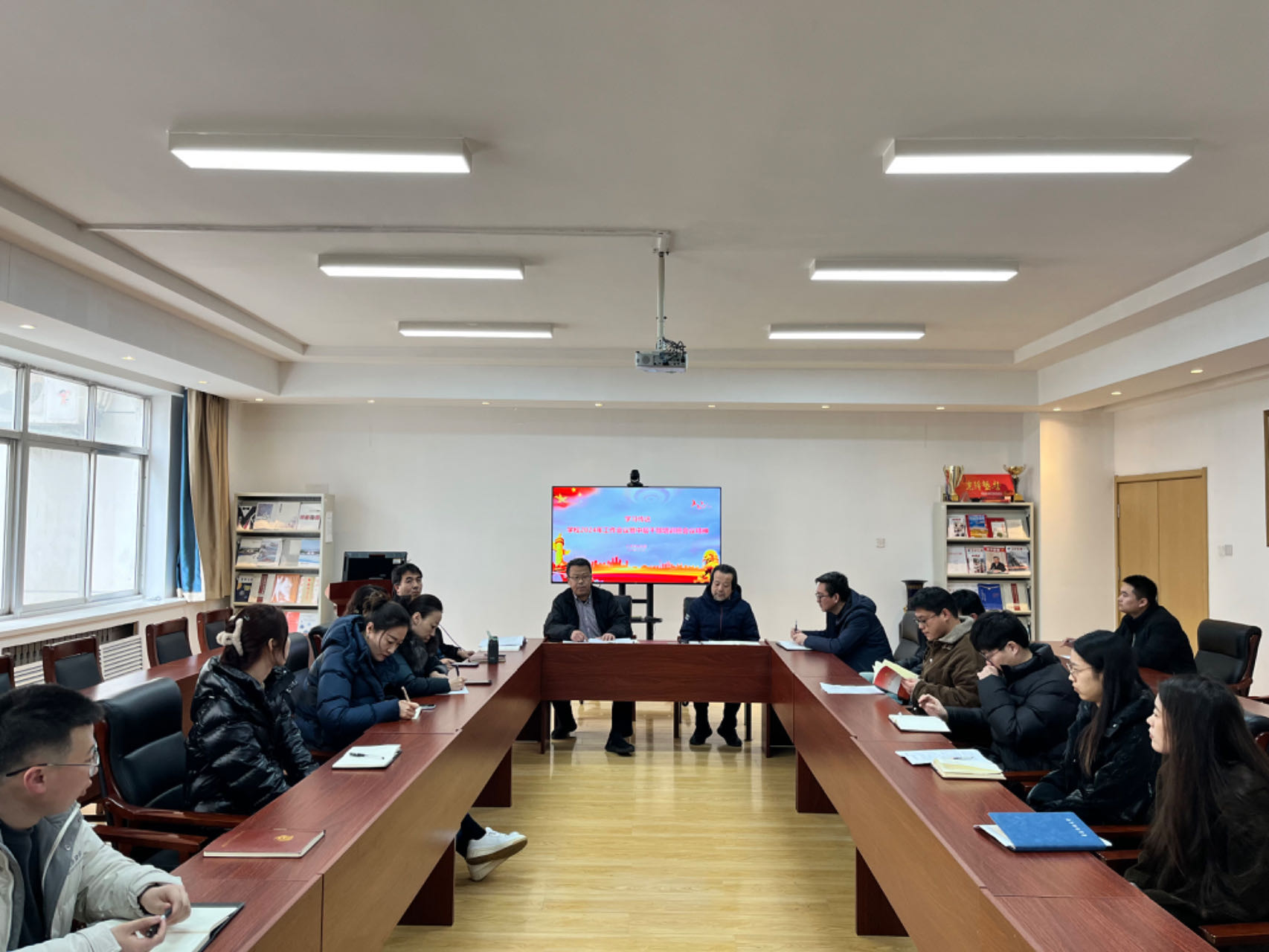 在213会议会议室召开会议传达校2024年工作会议暨中层干部培训班会议精神。大赢家比分