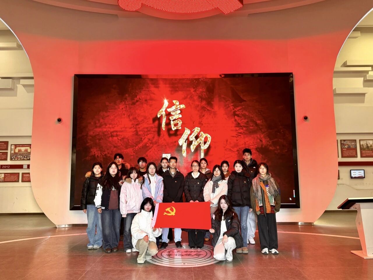 在党员政治生活馆内,新发展党员们依次参观了自建党以来至今的历次重要会议展陈内容,系统回顾了党发展历程。通过珍贵史料、多媒体互动和情景再现,大家深刻体悟到从救亡图存到民族复兴的壮阔征程,进一步理解了“坚持真理、坚守理想,践行初心、担当使命”的丰富内涵。