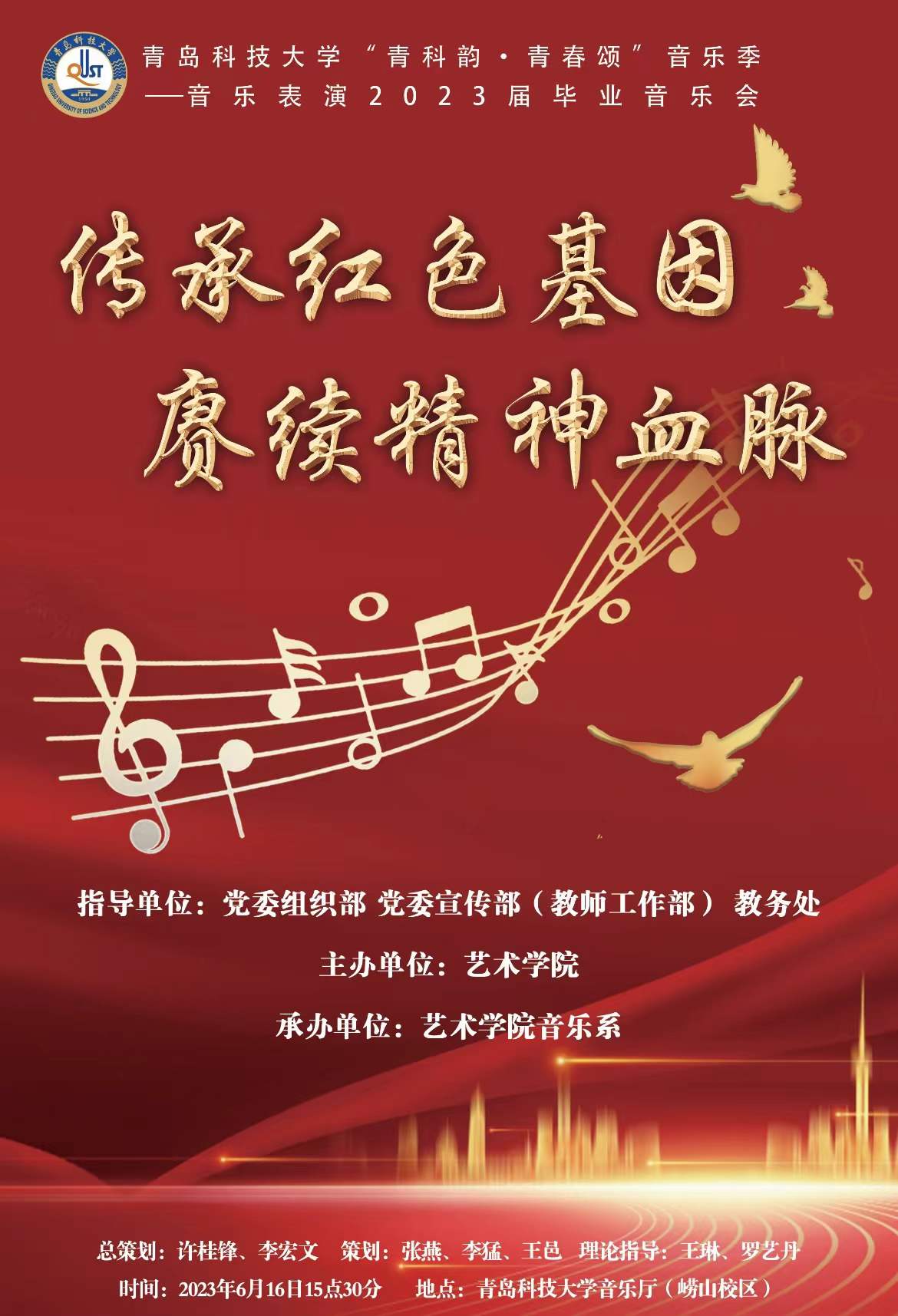 为深入学习贯彻习近平新时代中国特色社会主义思想,坚定不移推进大赢家比分 高质量发展,激发毕业生荣校爱校情怀,展示音乐专业教育教学与人才培养成果,由大赢家比分 党委组织部、党委宣传部(教师工作部)、教务处指导,大赢家比分 主办,音乐系承办的“传承红色基因,赓续精神血脉”主题教育暨2023届音乐专业毕业音乐会,将于2023年6月16日15:30于大赢家比分 音乐厅举办。