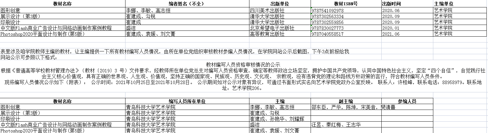 教材管理办法》(教材〔2019〕3 号)文件要求,经教师所在单位党总支对编写人员资格审查,确定等教师政治立场坚定,拥护中国共产党领导,认同中国特色社会主义,坚定“四个自信”,自觉践行社会主义核心价值观,具有正确的世界观、人生观、价值观,坚持正确的国家观、民族观、历史观、文化观、 宗教观,没有违背党的理论和路线方针政策的言行,符合教材编写人员条件。