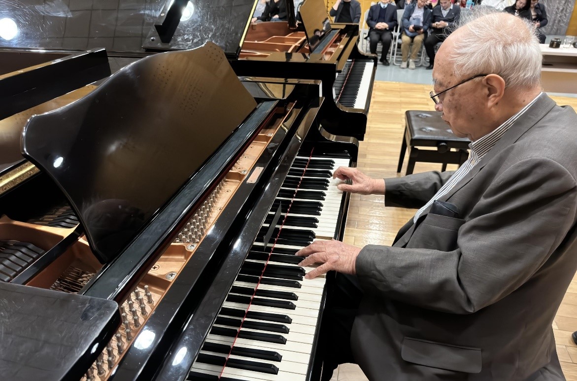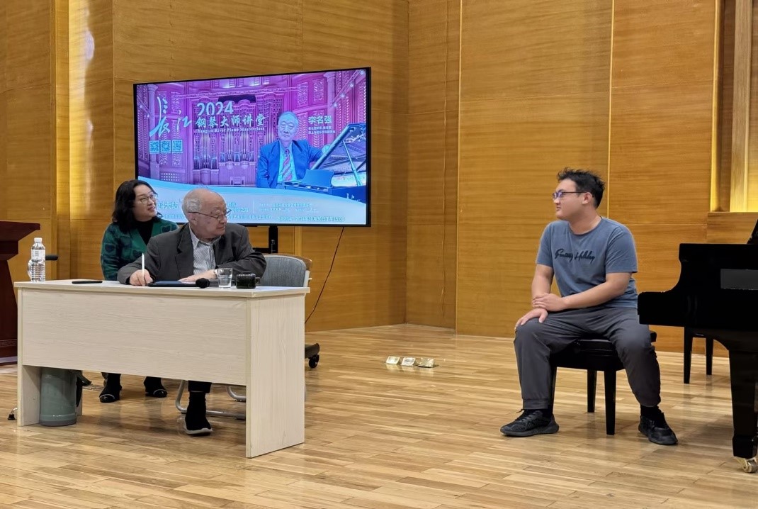 李名强教授以其丰富的演奏与教学实践,深厚的学术功底,引领着听众探索钢琴艺术的发展变革与中国钢琴作品的风格特征,讲座中音乐系三位钢琴专业学生演奏了张朝的《皮黄》,J.S.巴赫的平均律作品BWV863、帕蒂塔吉格等作品,李教授给予了详细的讲解和示范,并指出了未来学习的方向,88岁高龄的老先生对作品严谨求实的态度、对教学高度的敬业精神和对钢琴艺术的深入研究,感染着在场的每一位师生。