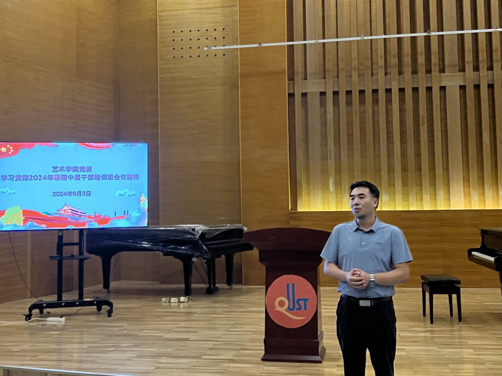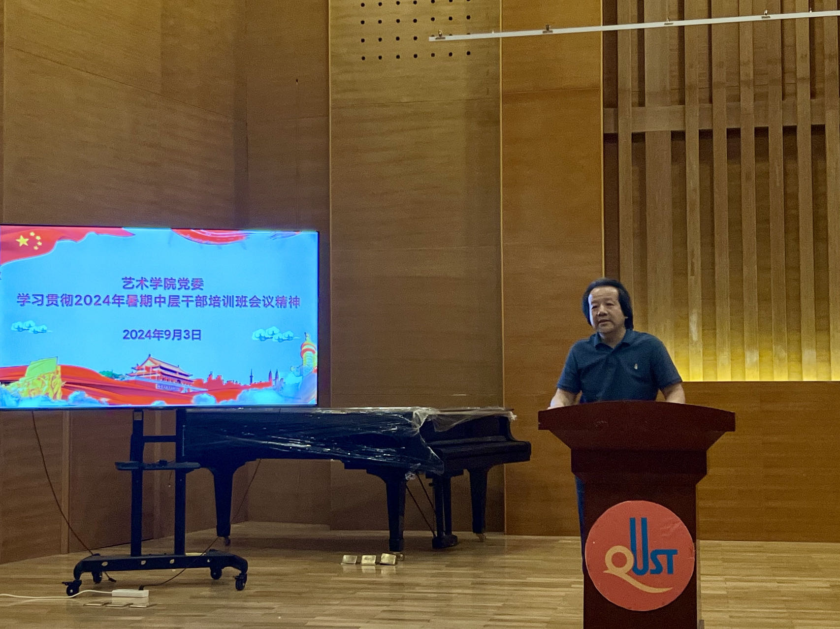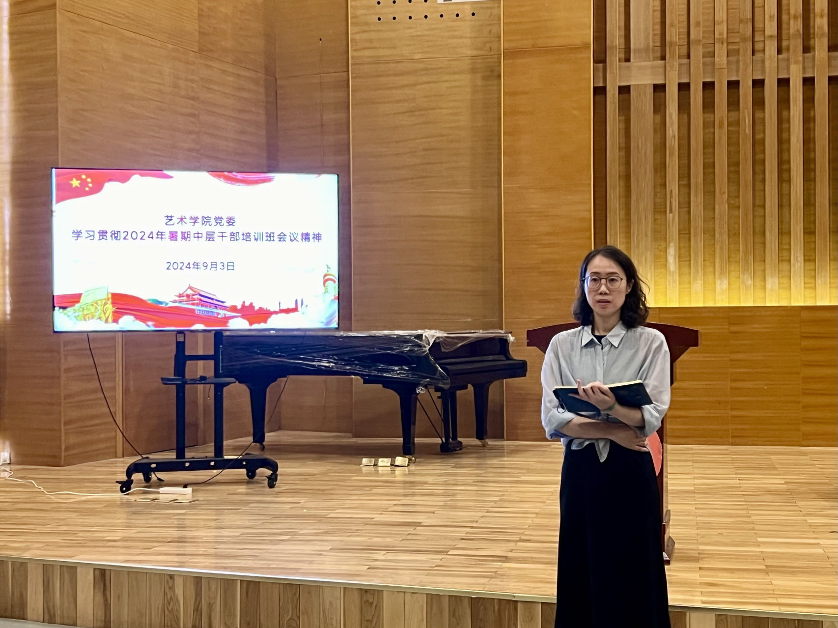 9月3日,大赢家比分 于音乐厅召开全体教职工大会。大赢家比分 院长李宏文,党委书记刘庆,副处级组织员曲波,副院长兼副书记丁一宁,副院长禹青、勾锐等大赢家比分 领导班子成员及全体教职工共同参加会议。会议由刘庆主持。