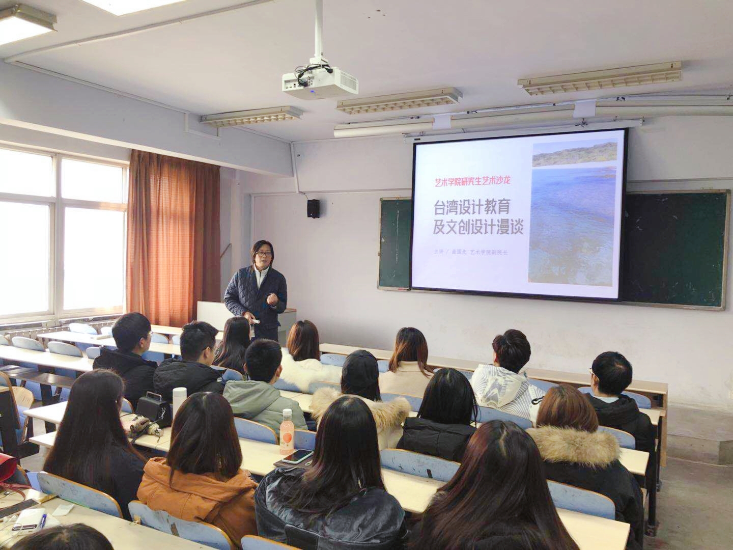 本期研究生学术沙龙邀请曲国先副院长作为主讲嘉宾,他与同学们分享了自己带领学生在台湾参观学习的经历,向同学们介绍了台湾文化创意设计现状,鼓励同学们将传统文化与自己的专业结合,与现代创意设计相结合,与市场现状相结合,促进产业的发展,促进文化、经济的发展。
