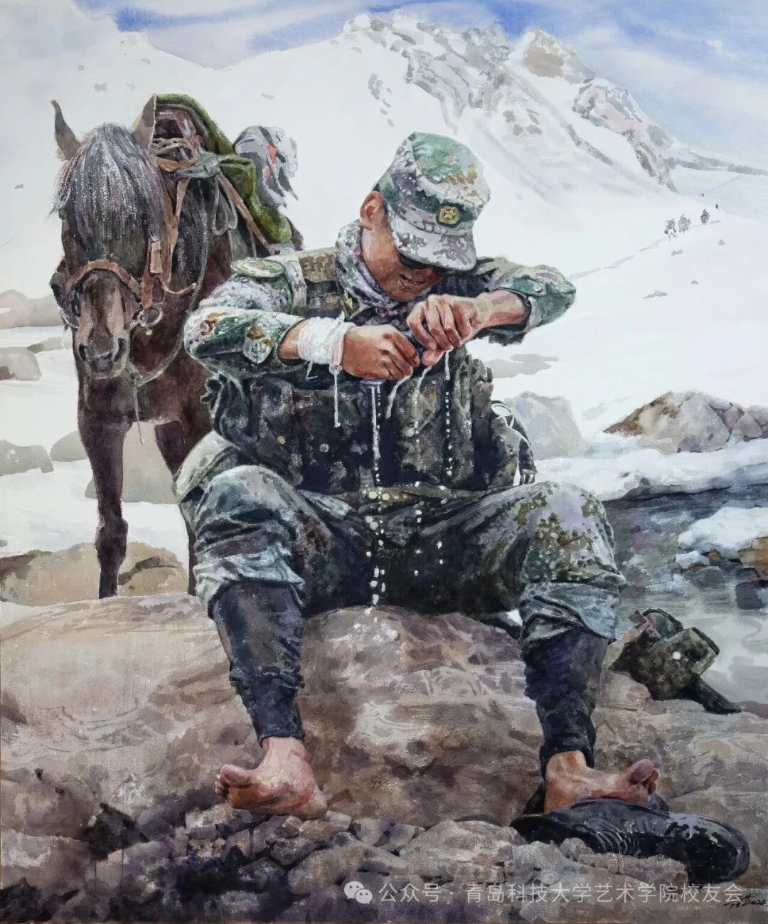 2022年水彩画《边疆卫士-巡防皮斯岭》入选第15届全军美术作品展览,作品在中